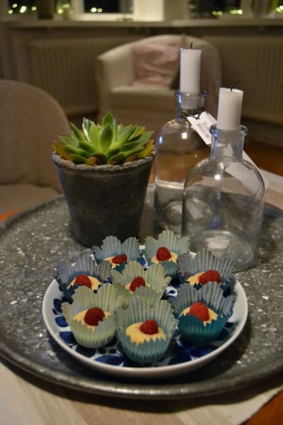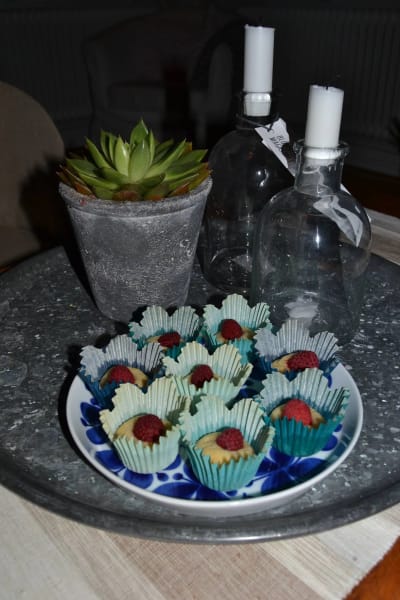- Platta till kulorna något och gör ett litet hål i mitten.