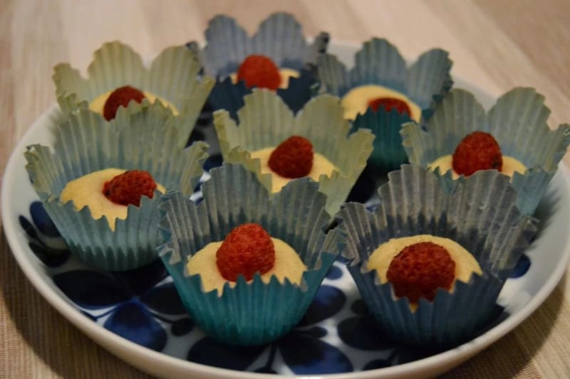En klassiskt recept på hallongrottor med en fräsch twist av bär istället för sylt.