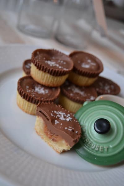- Lägg direkt 1 eller 2 noblesskivor på de varma kakorna, så att de smälter ner över kakorna.