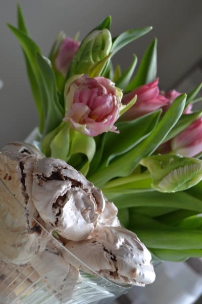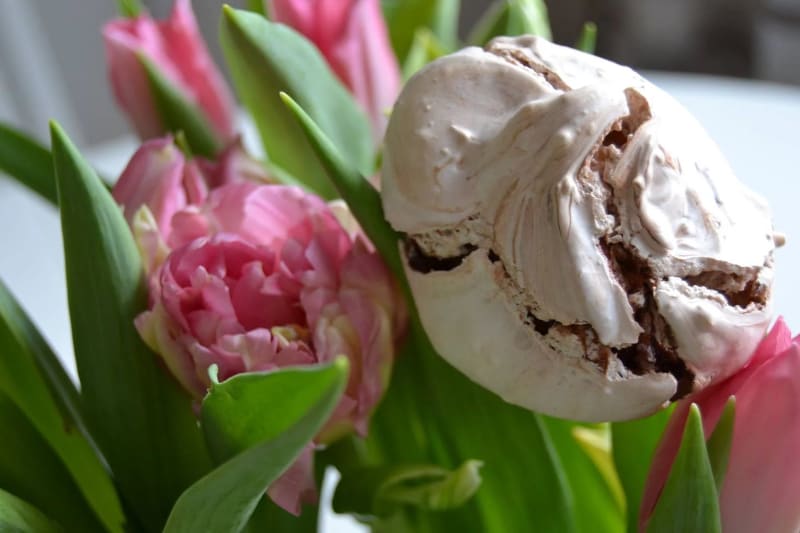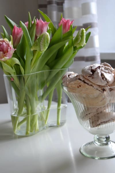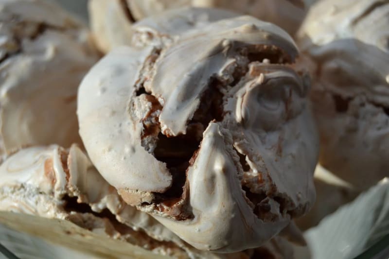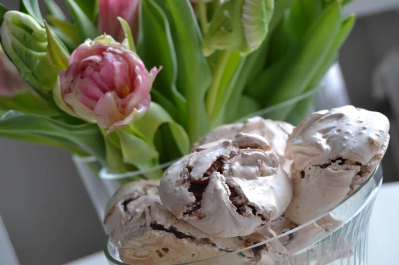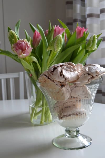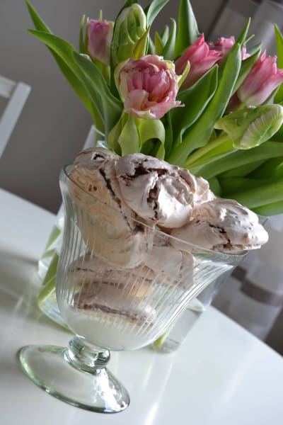 Sega maränger med malda hasselnötter och kondenserad choklad. Ett lyckat experiment som blev riktigt gott!
