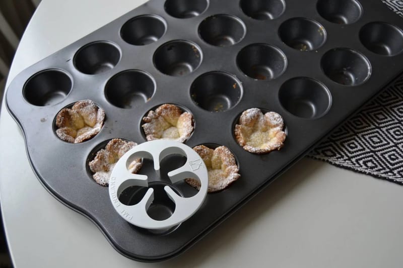 - Ta ut blommor med en utstickare och lägg dem i en minimuffinsplåt.