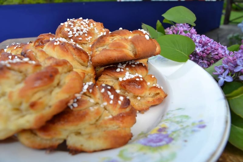 Ett recept på vetebröd med kardemumma och pärlsocker.