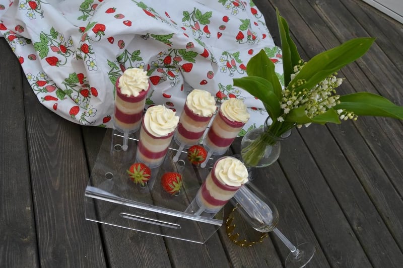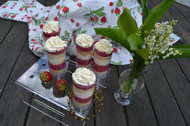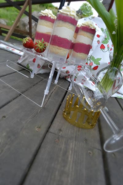 En rolig tårtvariant med hallonkräm och smörkräm, serverad i push cakes hållare.