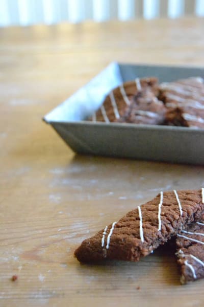 - Smält den vita chokladen och ringa över kakorna.