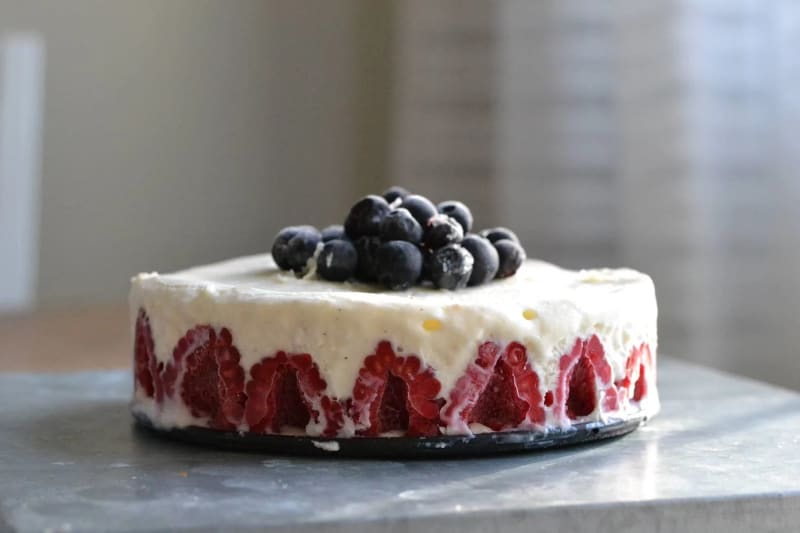 Ett snabbt och enkelt recept på en variant av tårta – vaniljglasstårta med bär. Perfekt att förbereda dagen innan födelsedagen.