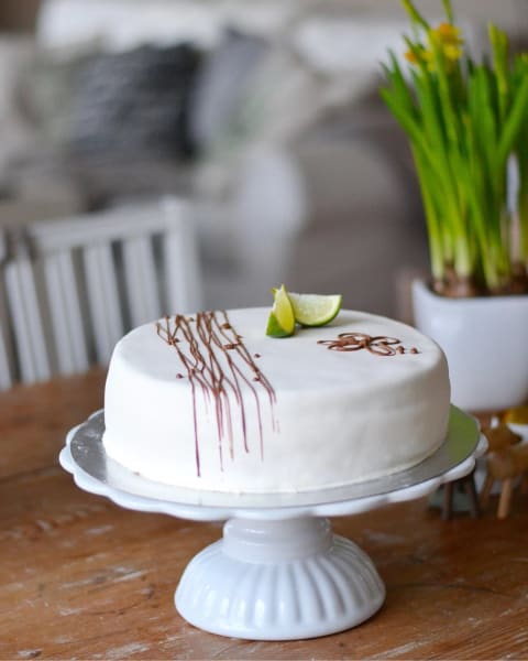 - Blanda ner bakpulvret i mjölet och vänd sedan ner det i äggvispet tillsammans med skalet från lime och blanda väl.