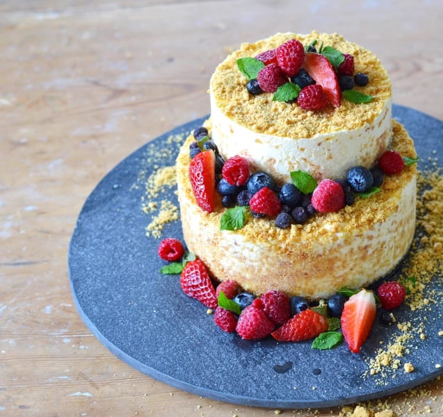 - Häll i smeten i formarna och täck med resterande del av de krossade digestivekexen.