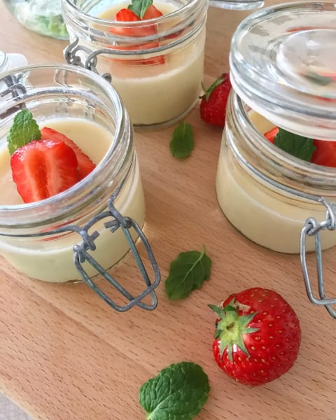 - Sila pannacotta och häll sedan upp i portionsburkar.