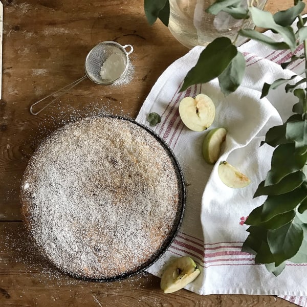 En supergod kladdkaka med äpple i.