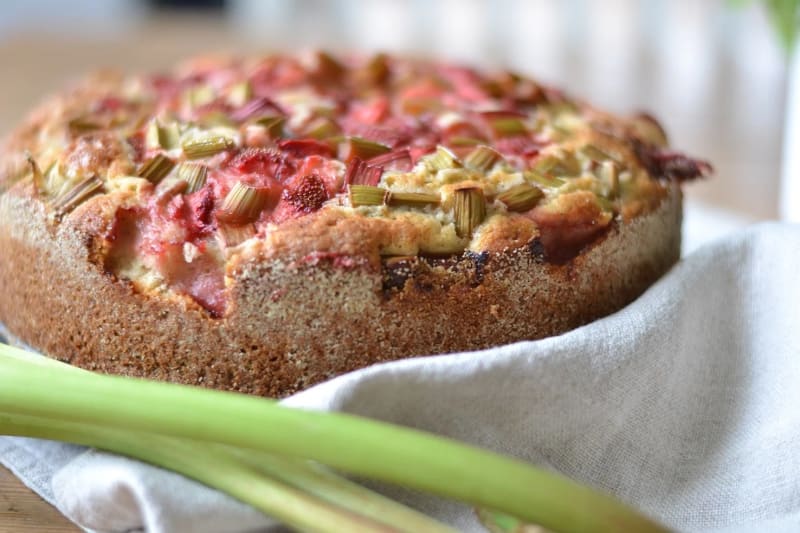En enkel och god kaka med rabarber och jordgubbar.
