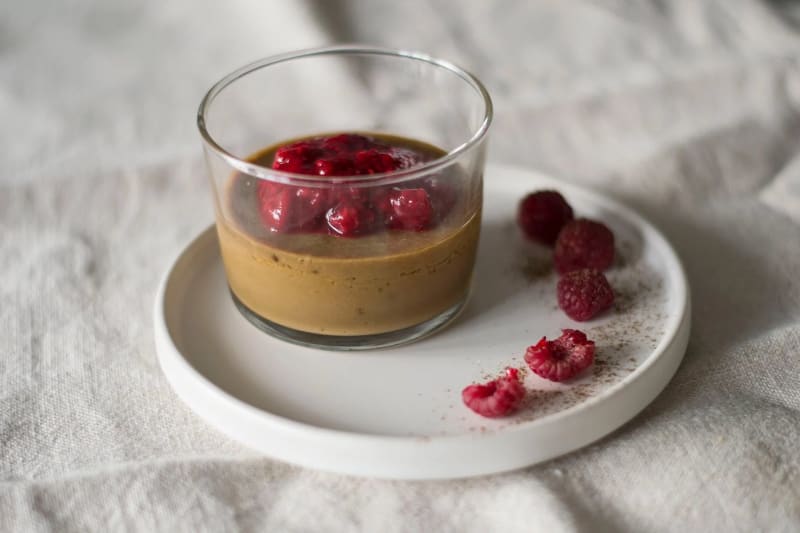 - Fördela hallonsåsen på toppen av pannacotta precis innan servering och dekorera eventuellt med några färska hallon också.