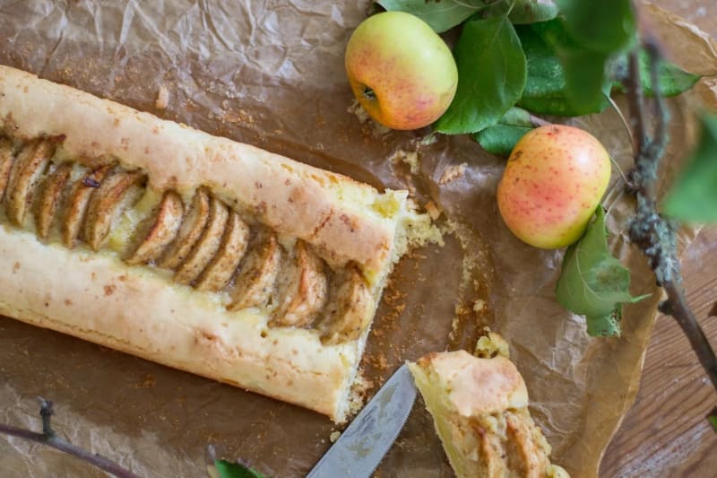 Enkel och god äppelkaka som kan gräddas antingen som kladdkaka eller mjukseg kaka.