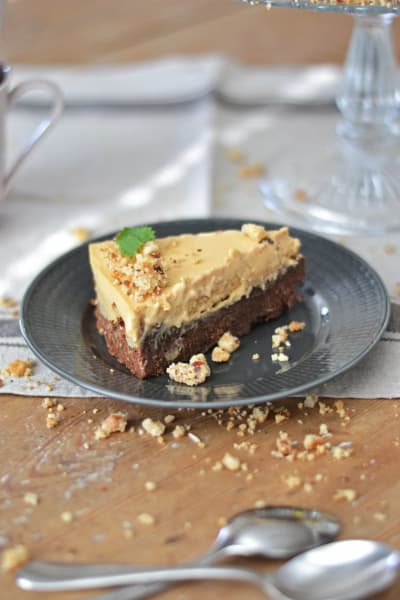 En läcker kladdkaka med en kombination av salt kola och knaprig crumble.