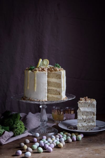 Hej söndag!Hoppas alla mår bra, det är såklart aldrig en självklarhet men än mindre som läget är just nu.Gissar att ni är flera precis som mig som håller på att styra om lite i påskplanerna och kanske funderar som bäst på hur menyn för de olika dagarna ska se ut. DÅ tänkte jag passa på att komma med det ultimata påsktårtereceptet. Det blir en rätt så rejäl tårta så det kan passa att bjuda grannarna på fika över trägårdshäcken nu när de flesta kommer vara hemma utan stora släkt- och kompisfiranden. Tårtan är med citronsmak rakt igenom mer eller mindre tillsammans med kardemumma som piggar upp de saftiga bottnarna. Du kan börja redan idag för att förbereda tårtan till kommande helg. Baka bottnarna och frys in dem, koka lemoncurd i veckan (den håller minst en vecka i kylskåp) och även smulpajssmulet går att förbereda några dagar i förväg. Så dagen innan servering är det bara till att göra fyllning/frosting och lägga ihop tårtan. För jag tycker den ska få i alla fall en natt i kylskåp innan den serveras för att safta till sig bra.Bilderna tog fantastiskt duktiga noorstudio_sofia här hemma i fredags när vi hade en lite fotosession. Så roligt och inspirerande varje gång som man får hänga med ett sådant proffs!Ha en fin dag<3Kram