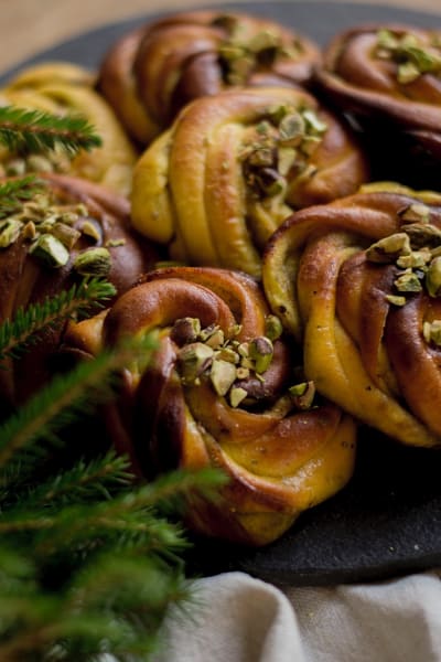 - Pensla bullarna med ägg (blanda gärna upp med lite vatten och salt för en lättare pensling) och strö över resterande pistagenötter.