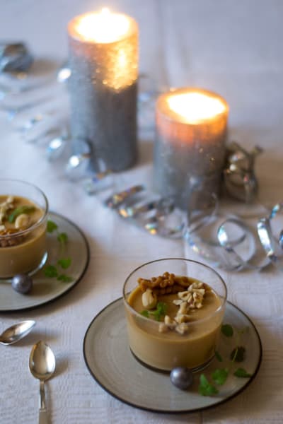 - Dekorera strax innan servering med mera karamelliserad mjölk och hasselnötterna.