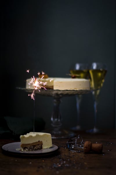 - Ta fram minst en timma innan servering, ta bort formen direkt från tårtan när det kommer från frysen men sedan tina på serveringsfatet i mint en- två timmar i kylskåpet innan servering.