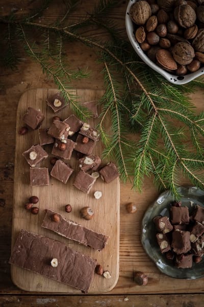 Lite julgodis helgen?Kolor och knäck i alla är, uppskattar det jätte mycket och allra helst om någon annan har gjort det. För helt ärligt, det är ju lite kladdigt och pyssligt att göra. Det ska kokas men inte fö mycket men heller inte för lite och sen i formar som riskerar att välta och ja du vet hur det rätt ofta kan bli.Då kommer julgodisräddningen här och stavas – Snabbfudge – här med julens bästa nöt, hasselnöten. Det är bara att smälta choklad ihop med kondenserad mjölk och så i med hasselnötter. Rostade eller inte är en smaksak. Sen ställ för att stelna och efter det är det klart att skära upp och njuta.Lätt eller hur?!